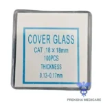 A thin, square piece of glass used to cover a sample on a microscope slide.